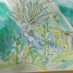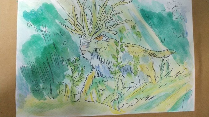 【アシタカ Ashitaka】 わたし的に、罪つくりな優しい男No.1ですね…ハイ🙄 マルマンスケッチブックに水張りなしでお絵描きしたので、めっちゃ紙よれてるけど、ジャーン!みたいな背景になりました😅 #ファンアート #もののけ姫 #水彩 #イラスト #Watercolor #ジブリ好きと繋がりたい