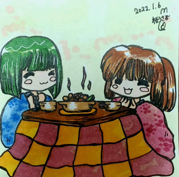 [イラスト100日チャレンジ33] 都内は久しぶりの雪❄️ こんな日はやっぱりこたつでほっこり♨️ お鍋も🍲 そんなシーンを千と千尋から💕 ハクと千尋💓 #絵描きさんと繋がりたい #イラスト好きと繋がりたい #ジブリ好きと繋がりたい #千と千尋の神隠し #こたつでほっこり #寒い日はお鍋 #体に気を付けて