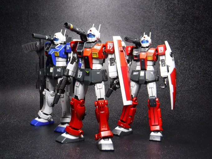 #ガンプラ #GUNPLA #HGTO #MSD #フルアーマーガンダム #セミアーマージムキャノン #ガンダム #ロールアウトヘッド #ジム #ジムキャノン 孔雀小隊(仮)のアーマー装着前後