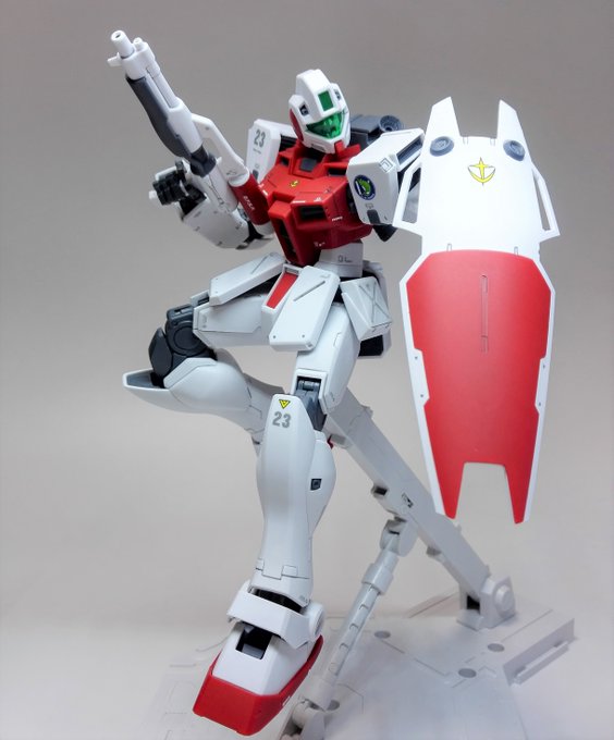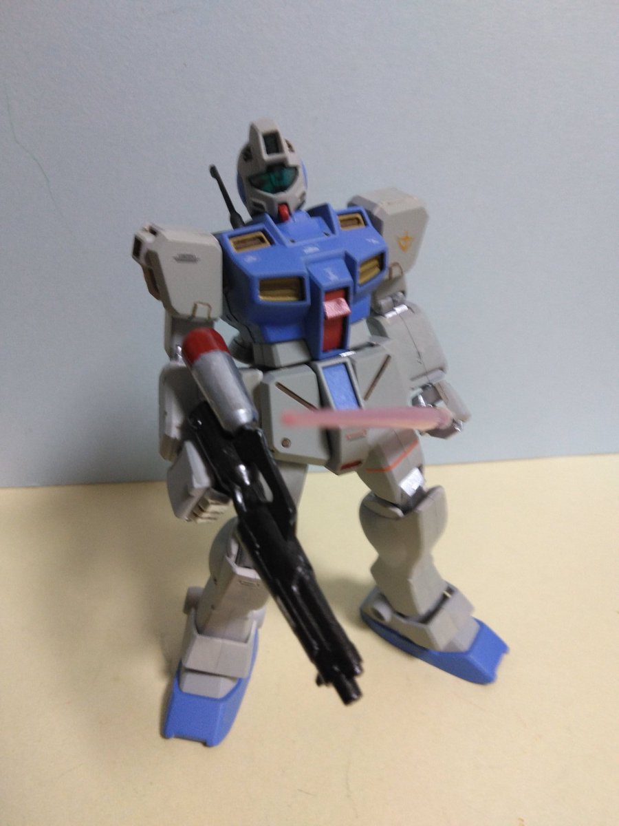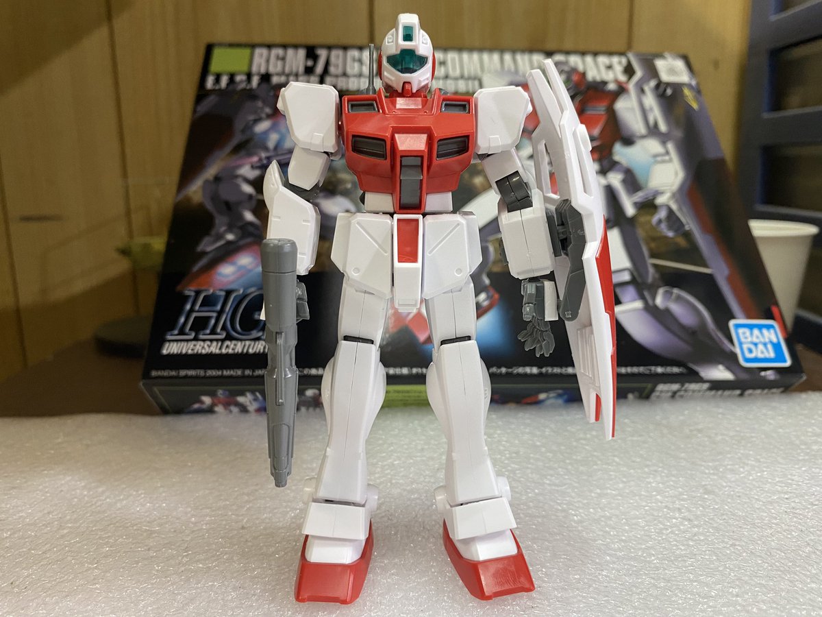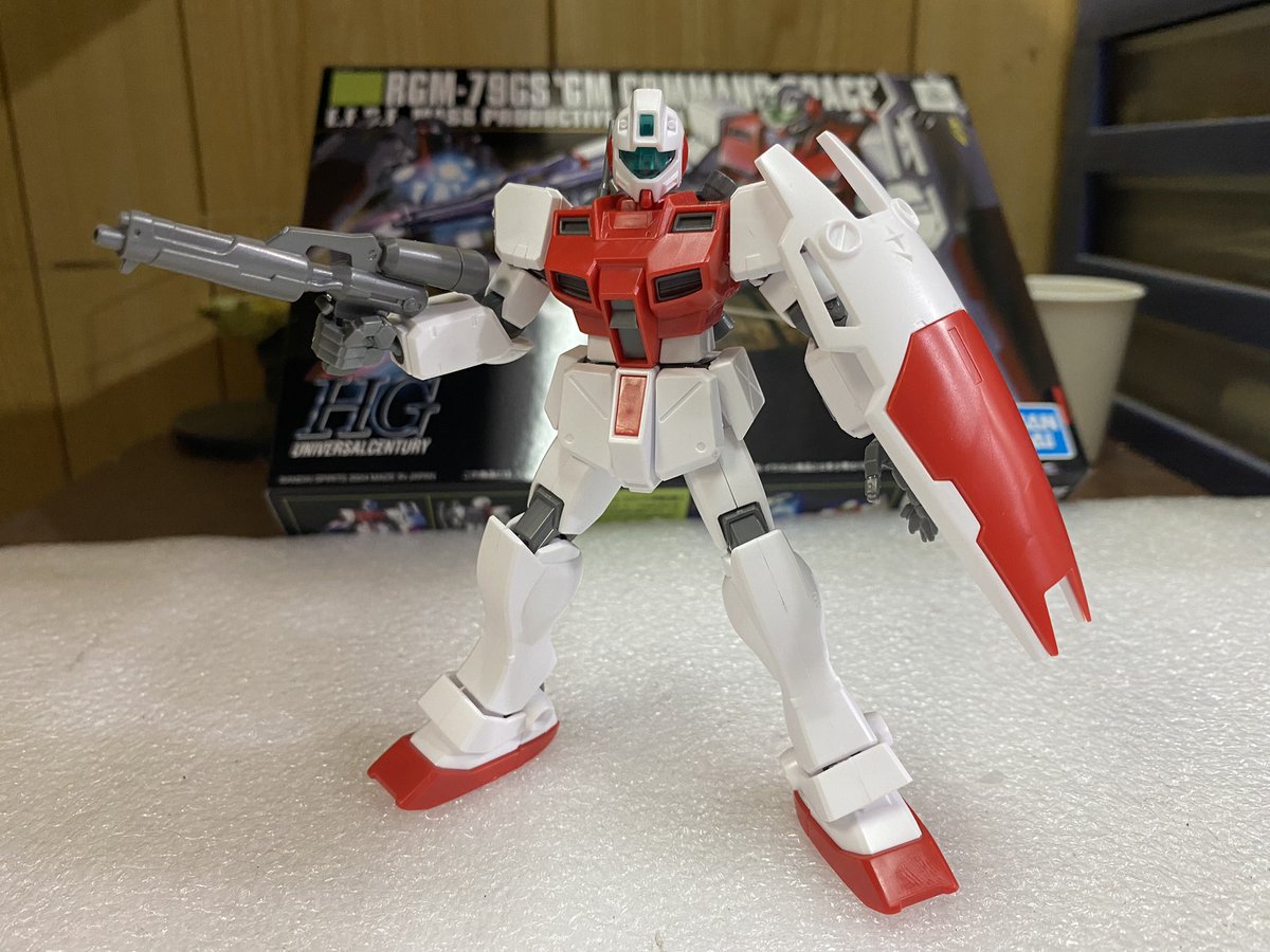 久々ガンプラ活動。HGUCジムコマンド(地上タイプ) を作りました。 シールドは外して軽量化・機動力向上。武装は高威力のビームガンにしました!! #ガンプラの画像貼るとRTされると聞いて #ジムコマンド