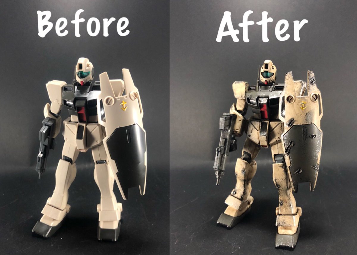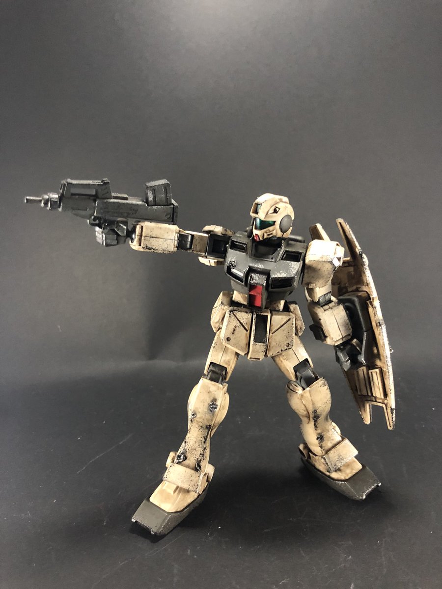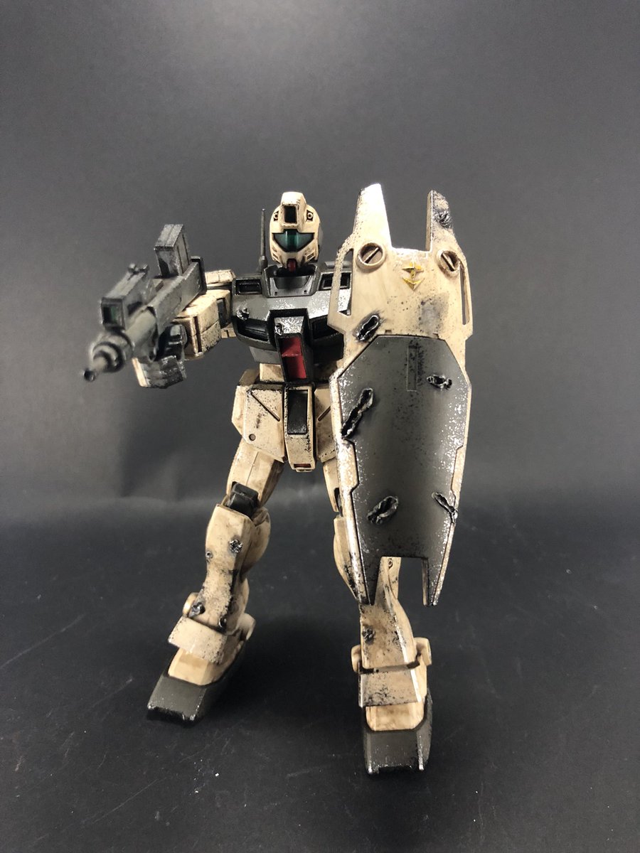 ジムコマンド完成! 塗装はガンダムマーカーの部分塗装のみで、ハンダゴテでのダメージ加工とウェザリングで仕上げました😃 #ジムコマンド #ガンプラ好きな人と繋がりたい #ガンプラの画像を貼るとRTされると聞いて #ガンプラは自由だ