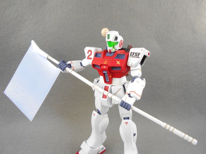 #ガンプラ #ガンプラはどんな自由な発想で作ってもいいんだ #ガンプラの画像貼るとRTされると聞いて #HGUC #ジムコマンド #カスタムペイントshaftD #模型活動 ゲート処理合わせ目消し等済ましマスキングしてプライマー塗ってホワイト塗りました。