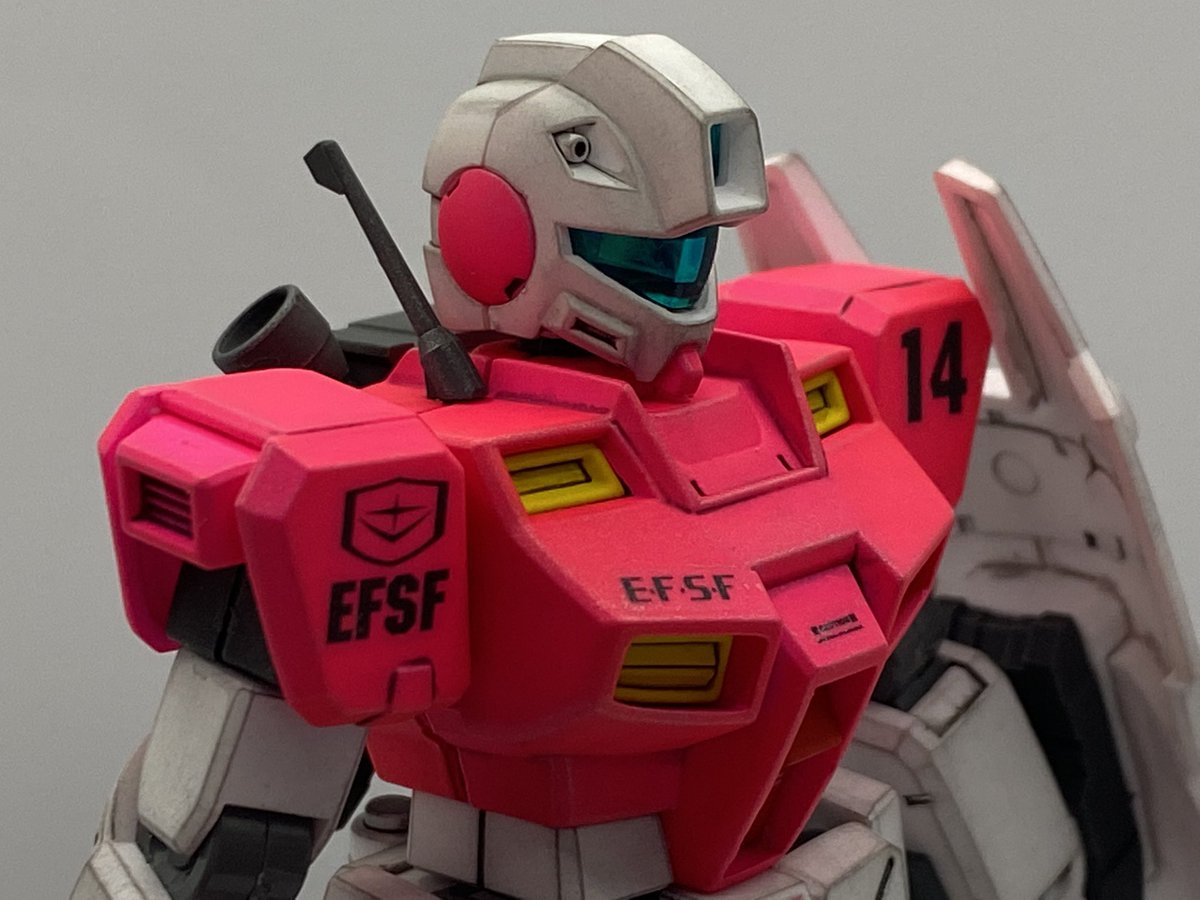 #ガンプラ #ガンプラはどんな自由な発想で作ってもいいんだ #ガンプラの画像を貼るとRTされると聞いて #HGUC #ジムコマンド #カスタムペイントshaftD メインの色は蛍光ピンク!なかなかいないでしょ?蛍光色なんて 戦場ではあえて目立って囮専用?いやデモンストレーションカラーです