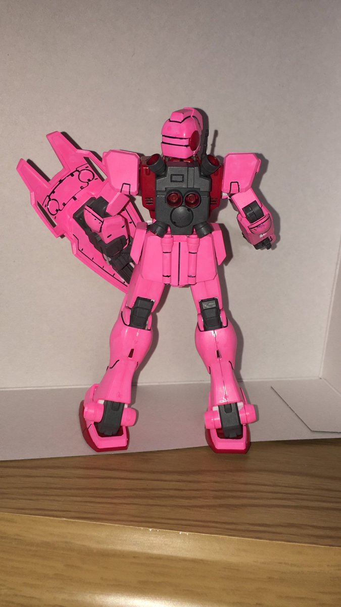 ジムコマンド完成しました! トランザムでは無く「トランジム」とでも命名しましょうか👍 ピンク色もなかなか良いんじゃないでしょうか? #ガンプラ #ガンプラ好きと繋がりたい #ガンプラの画像貼るとRTされると聞いて #ジムコマンド