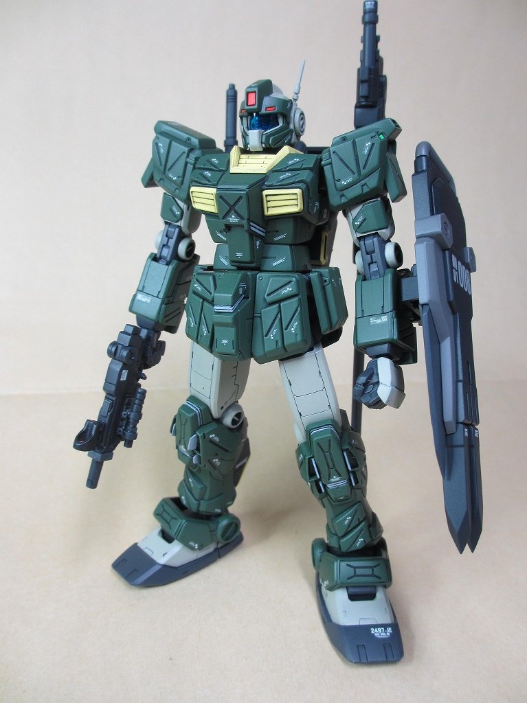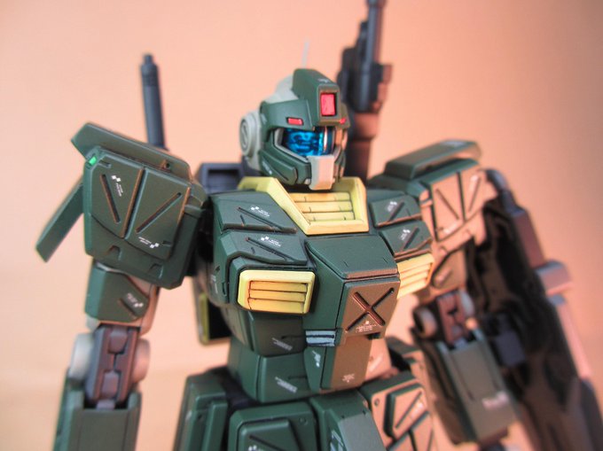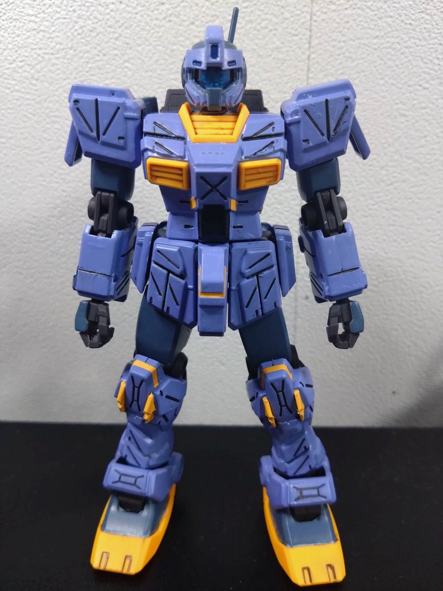 HGUCジムストライカー完成しました! 初めての塗装(ガンダムマーカーエアブラシ)だったんでアルコール系は重ね塗り厳禁を知らずちょいちょい汚くなってしまった所もありますが、それなりにはなったかな? #ガンプラ #ガンプラの画像を貼るとRTされると聞いて #ジムストライカー