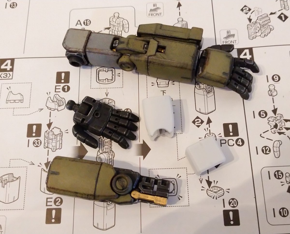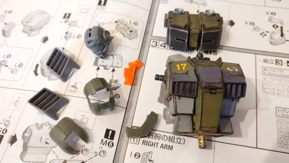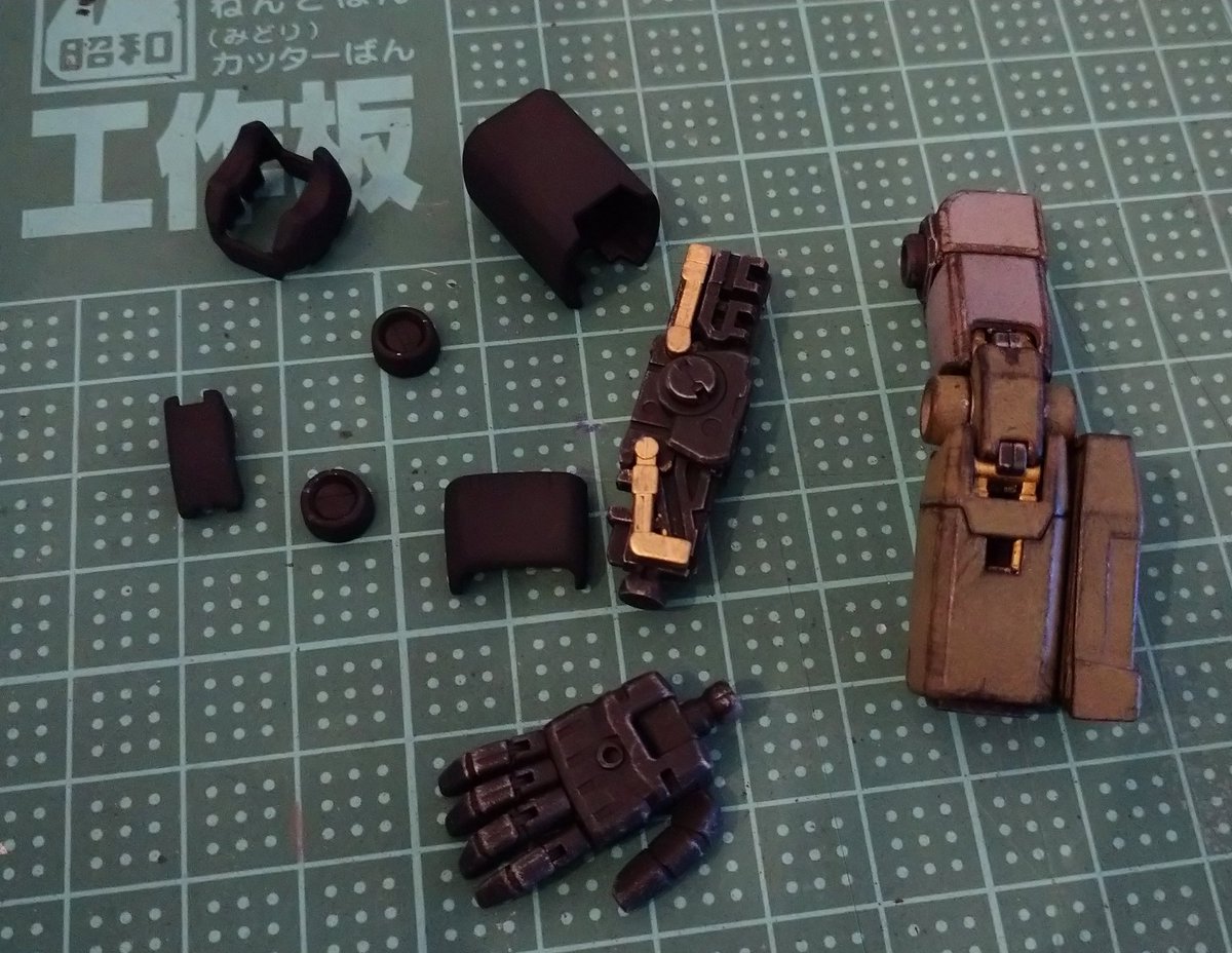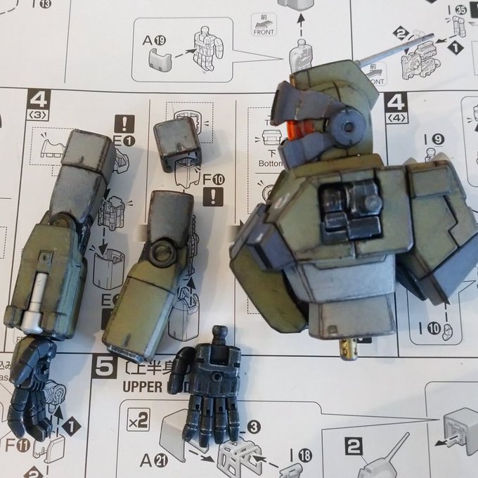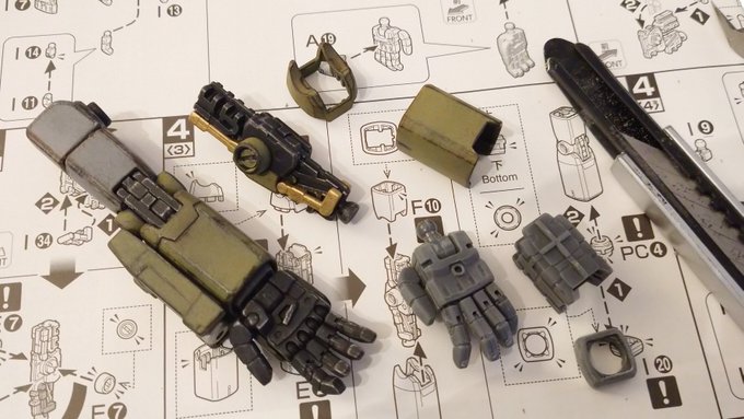右腕を作ってます☺️ #ガンプラ #gunpla #ジムスナイパーカスタム #GMSNIPERCUSTOM #RGM79SC 組んだときに F10は何処?と探してましたが、切り出しすらしてなかった😅色が違うから後にまわしたみたい😌
