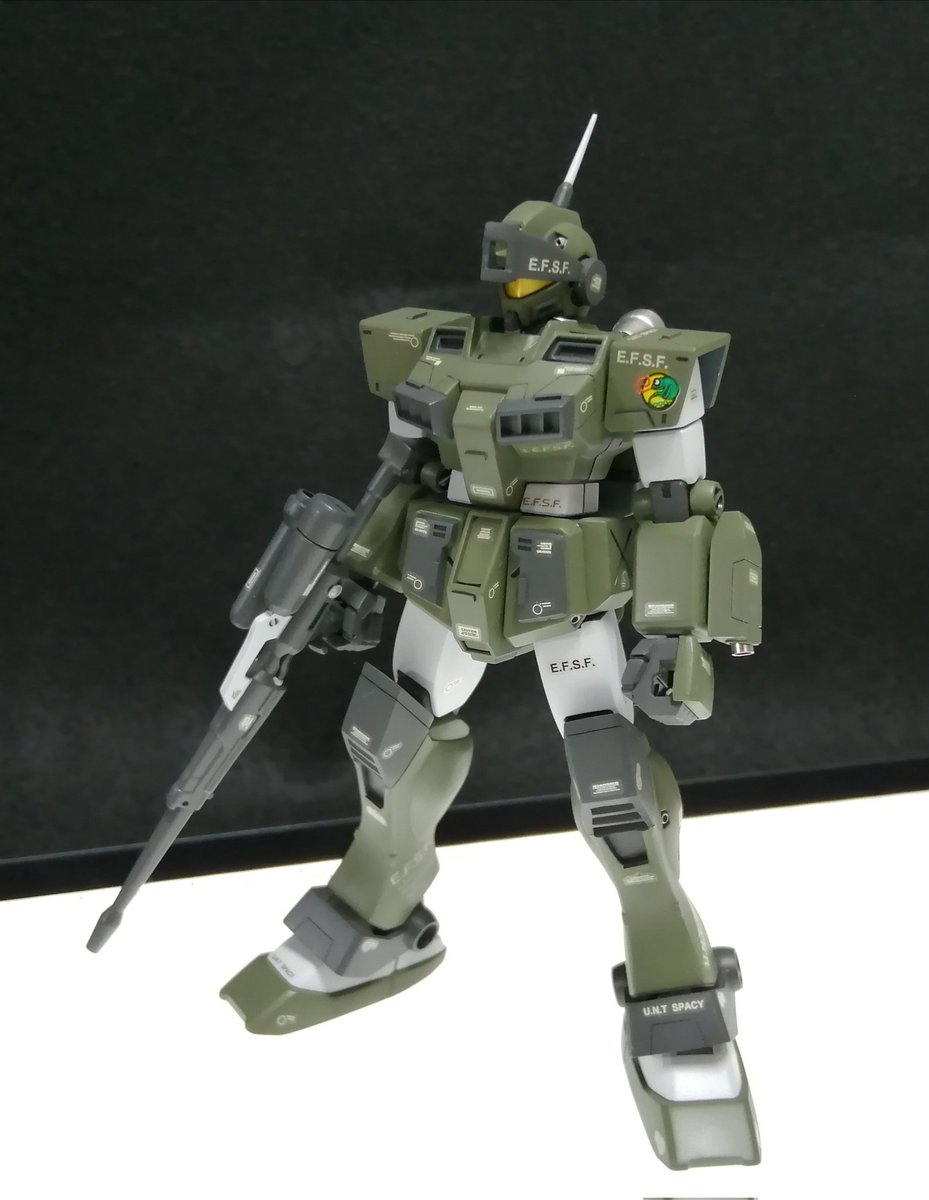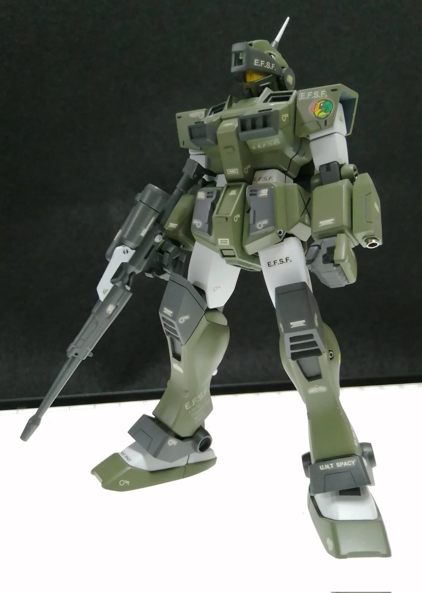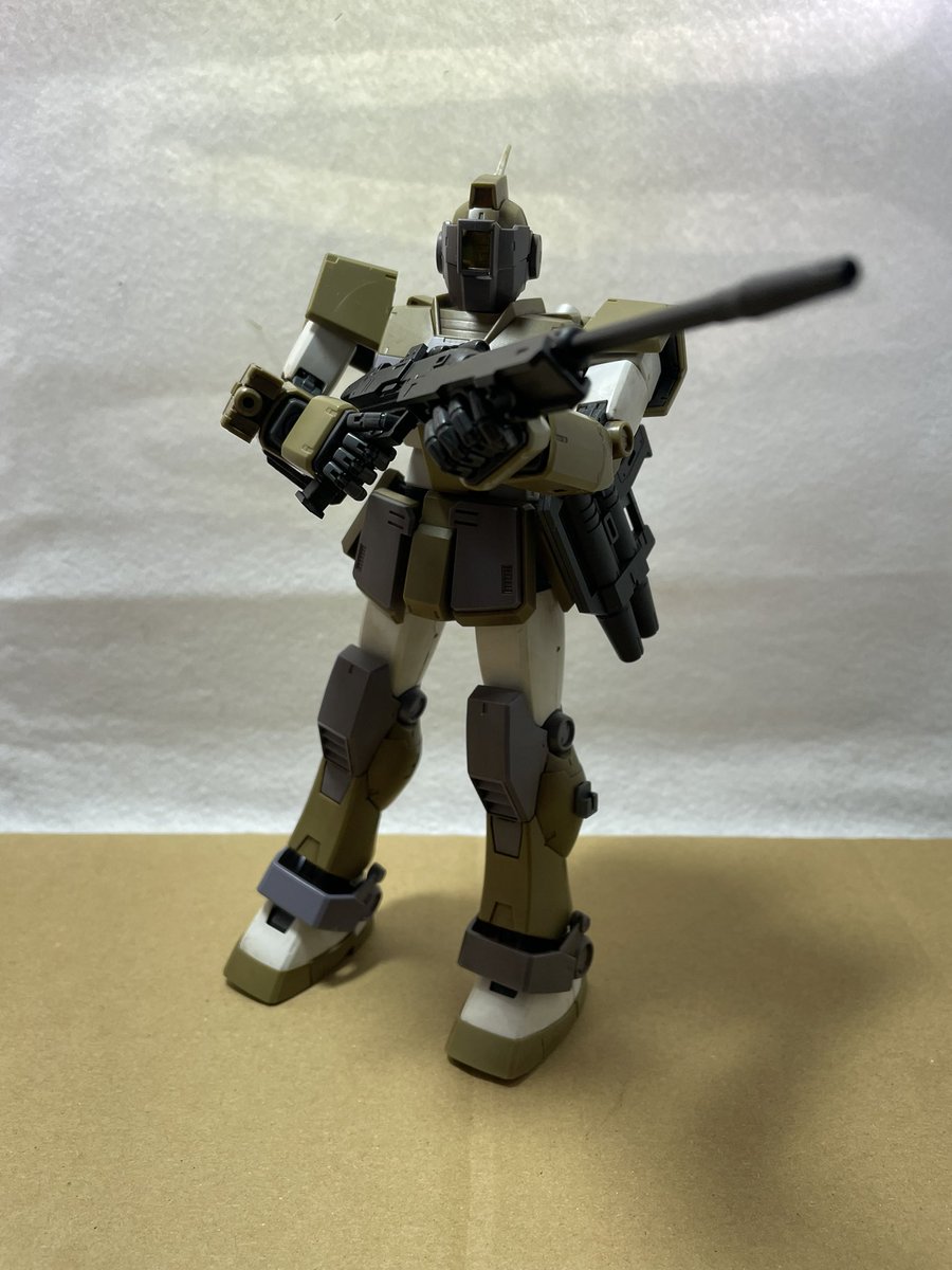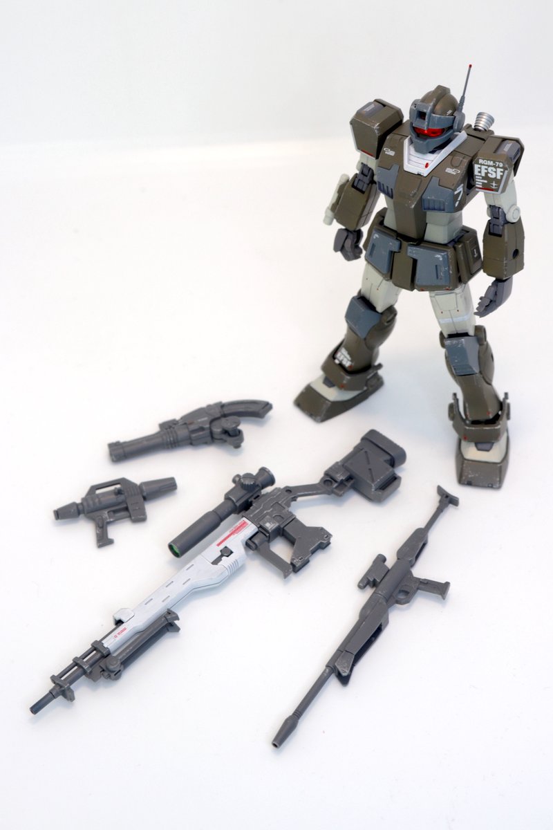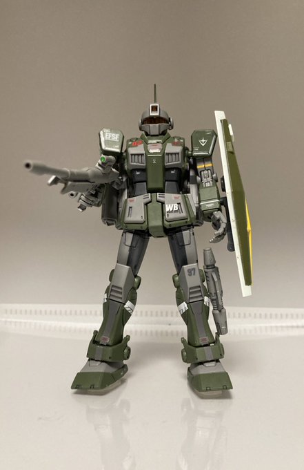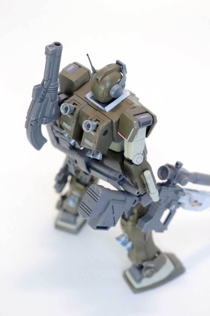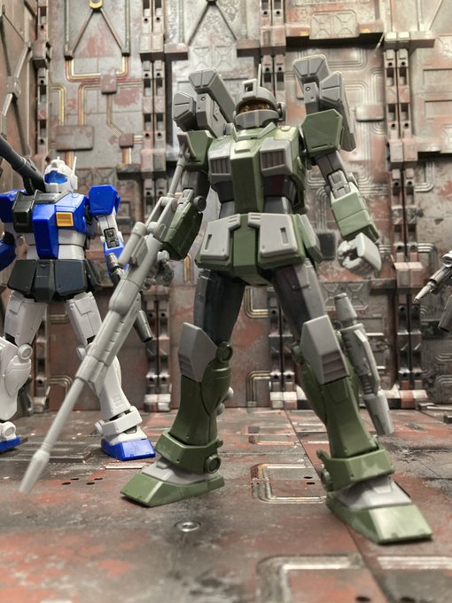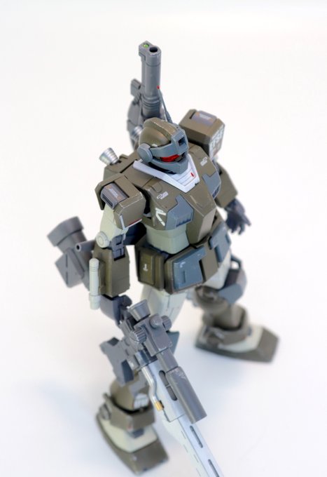#HGオリジン 3連作、最後は #ジムスナイパーカスタム です。 こちらも基本的にはストレート組みですが、頭頂部のちょんまげアンテナがあまり好きではなかったのでアンテナ位置を変更したのとシステムウェポンのライフル、ガンダムのショルダーキャノンを装備させました。 続く #ガンプラ