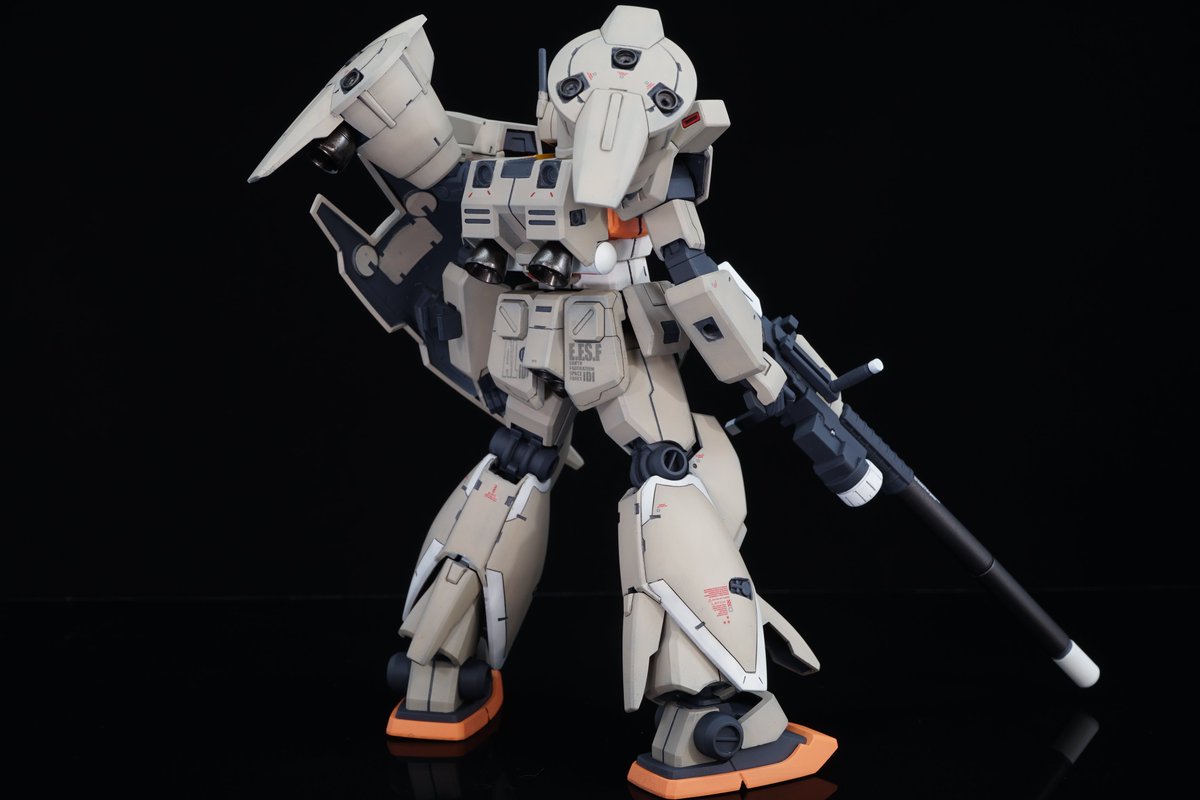 #今月作ったプラモ晒そうぜ そういえばHGUC #ジム・カスタム高機動型 完成してました❗ 展示会前日に完成したので撮影すら忘れてた…(´・ω・`) 設定的にはIfもIf“バニング大尉が生存していた場合の搭乗機でカラーリングはアナハイムジャーナル風”というものです(*´ω`*)