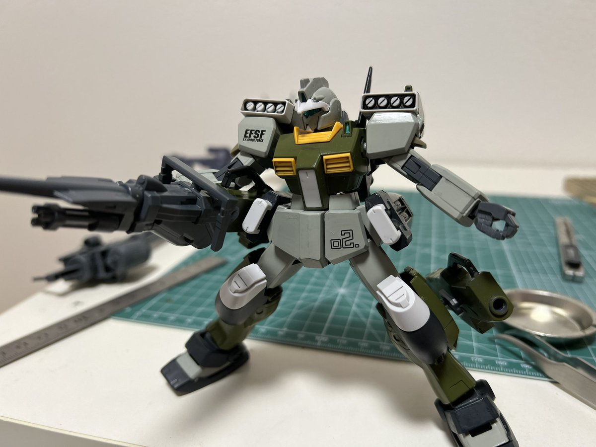 パチ組しながら、背負わせたいバックパック付けたらこうなった(*´꒳`*) 自分で言うのもおかしな話だけど、良き( *˙꒳˙)b #ガンプラの画像貼るとRTされると聞いて #ガンプラはどんな自由な発想で作ってもいいんだ #ジムIIIビームマスター