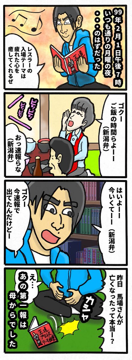 #プロレスファンあるある早く言いたい 1月31日になると馬場さんを思い出しがち。 もう23年前になりますね。 私は専門学校に通っていた時期でした。 あなたはどんな状況で第一報を知りましたか? #プロレス #ジャイアント馬場 #4コマ漫画 #昭和53年生まれによるプロレスの思い出