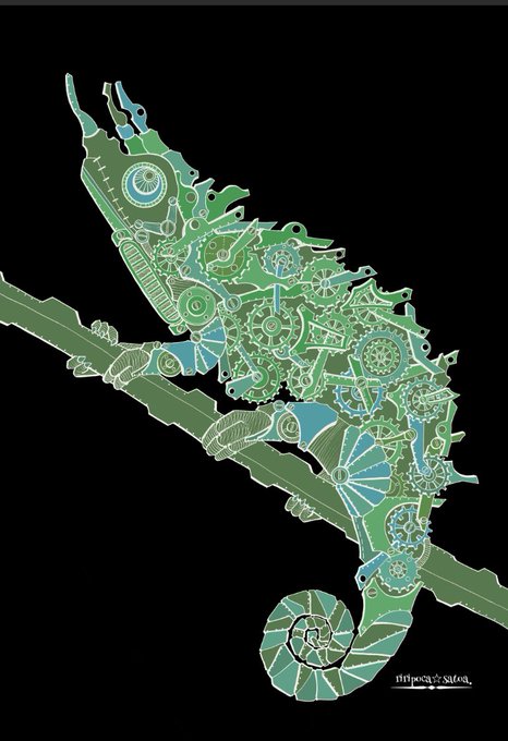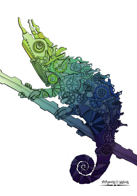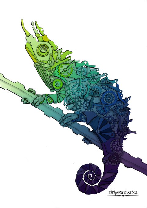 お疲れ様でした✨✨ ゆっくりとお過ごしください♪ ⚙ジャクソンカメレオン⚙ #スチームパンクイラスト #歯車イラスト #ジャクソンカメレオン #ペン画 #アトリエの系譜S #誰か優しい人が拡散してくれてフォロワーさんが増えるらしい