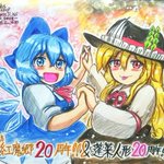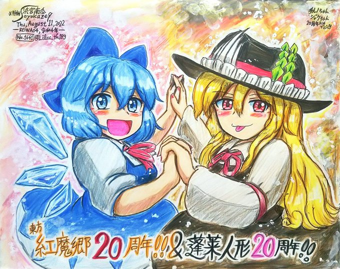 チルノちゃん&ジャケちゃん❄️✝️ 二十歳のお誕生日おめでとう!!!🎂 #チルノ(#東方Project) #ジャケットのあの子(#蓬来人形) #深夜の真剣お絵描き60分一本勝負 (東方版・1641回目参加・お題フリー) (※1月10日お題) #紅魔郷20周年 #東方紅魔郷20周年 #蓬来人形20周年 #蓬来人形20周年記念