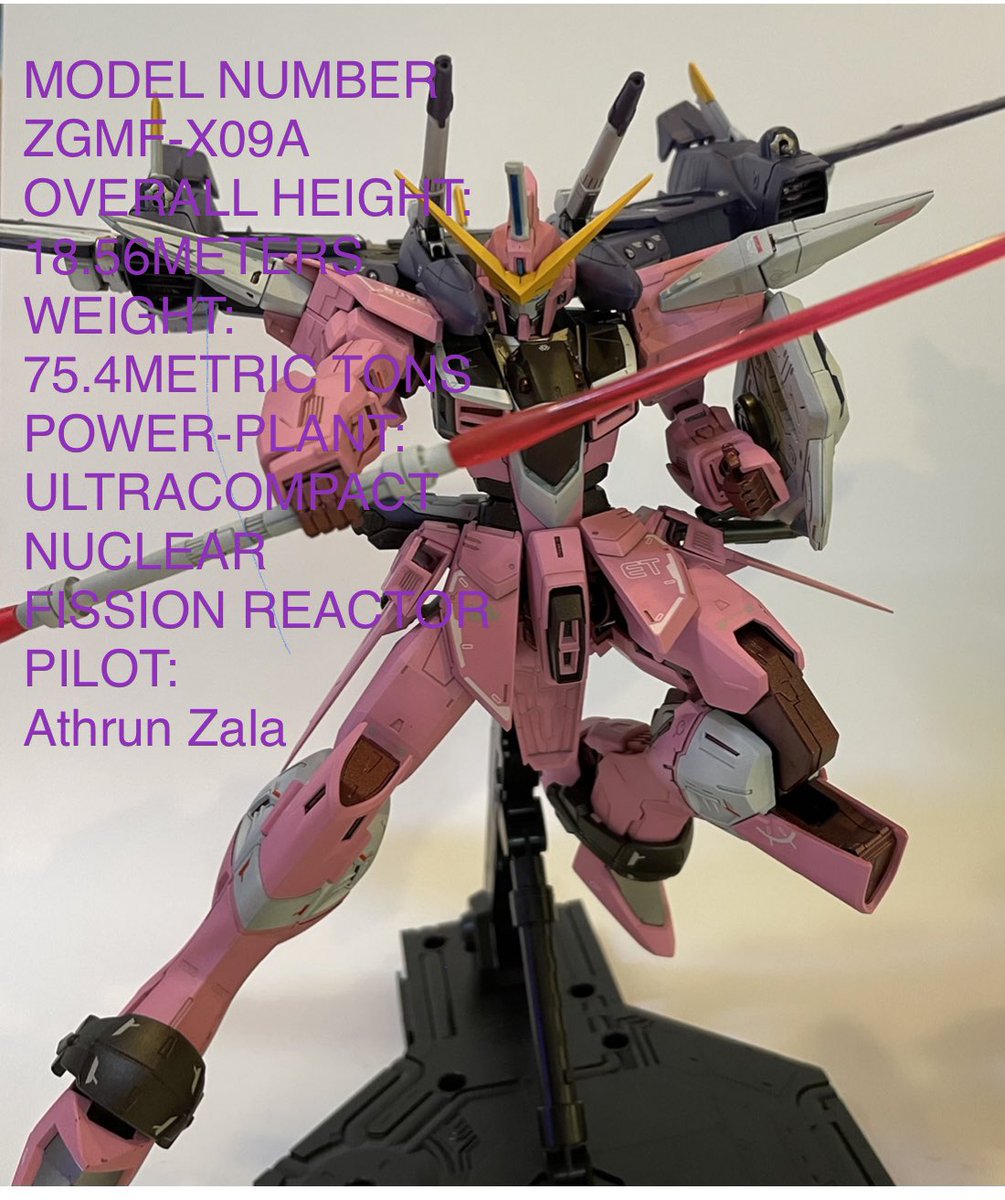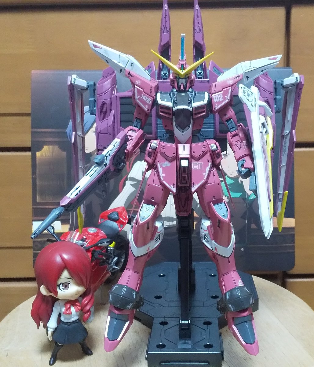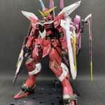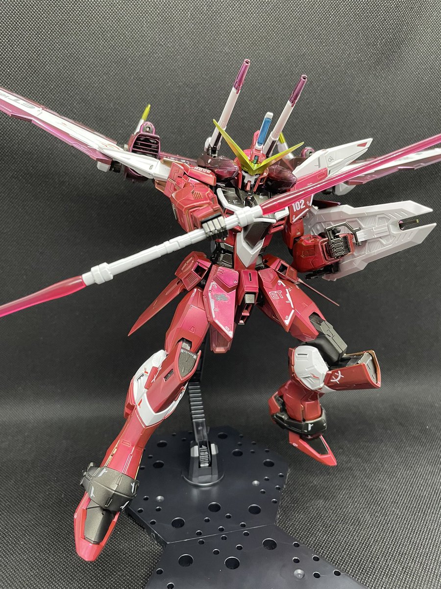 完成!MGジャスティスガンダム! キャンディ&メタリック塗装で仕上げました! もうクリアーピンク使いたくないです… 難しかった… #ガンプラ #ガンプラの画像を貼るとRTされると聞いて #ジャスティスガンダム