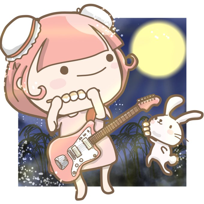 前髪ぱっつんギター女子。 私を月につれて行って💕 Fly me to the moon #絵描きさんと繋がりたい #fender #フェンダー #ジャズマスター #秋の創作クラスタフォロー祭り #私の絵柄が好みって人にフォローされたい