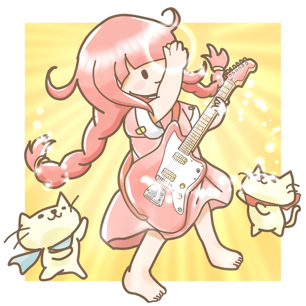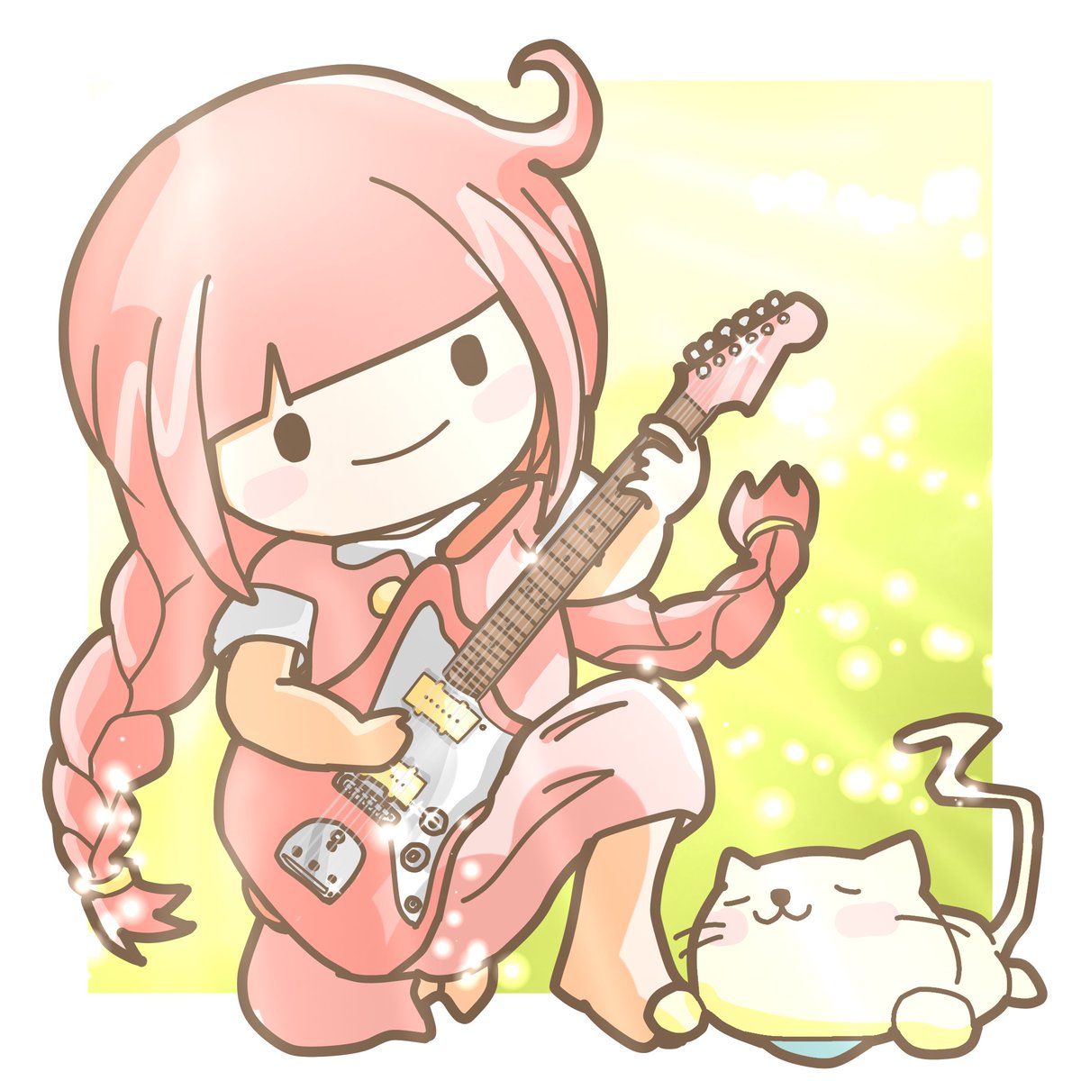 前髪ぱっつんギター女子 サンシャインっ☀️🐈⬛☀️ #絵描きさんと繋がりたい #fender #フェンダー #ジャズマスター #1日1絵 #秋の創作クラスタフォロー祭り #私の絵柄が好みって人にフォローされたい