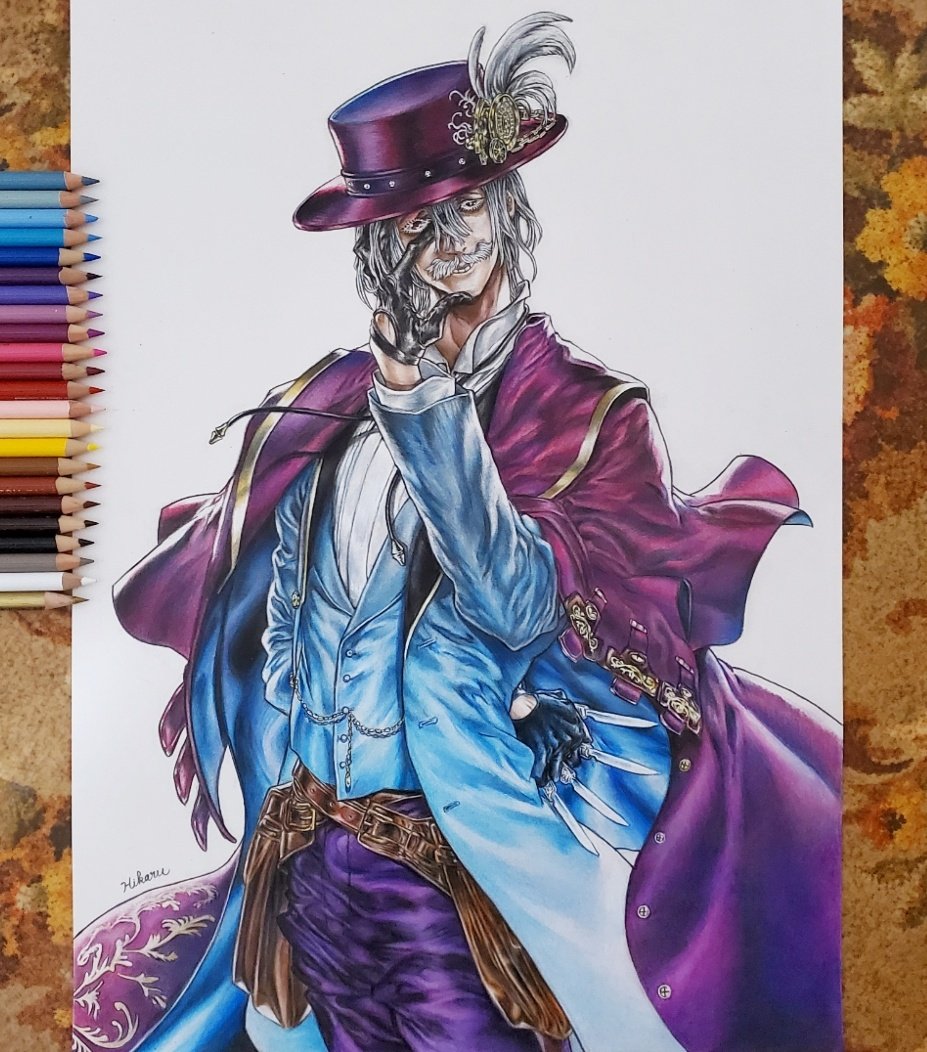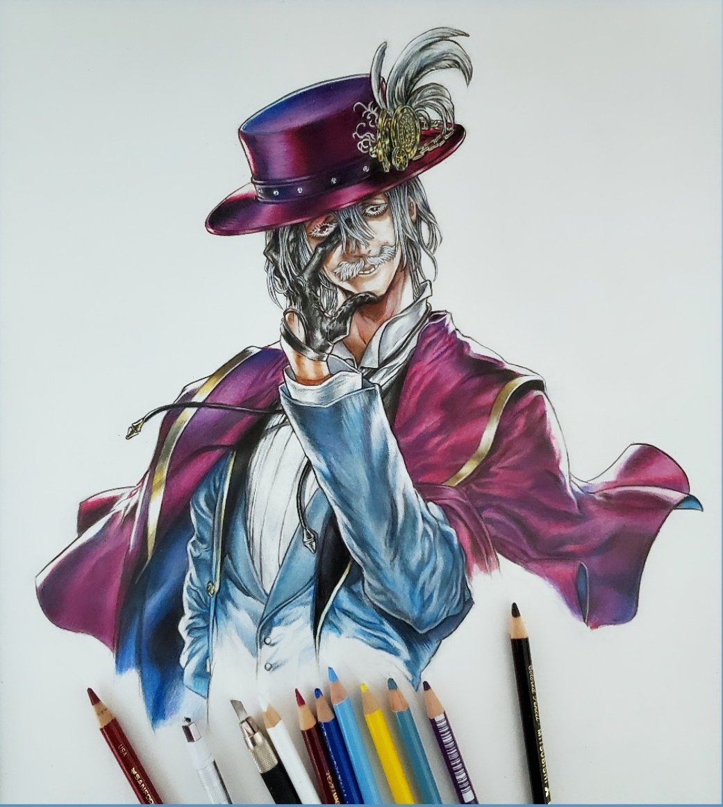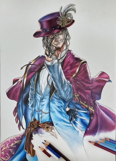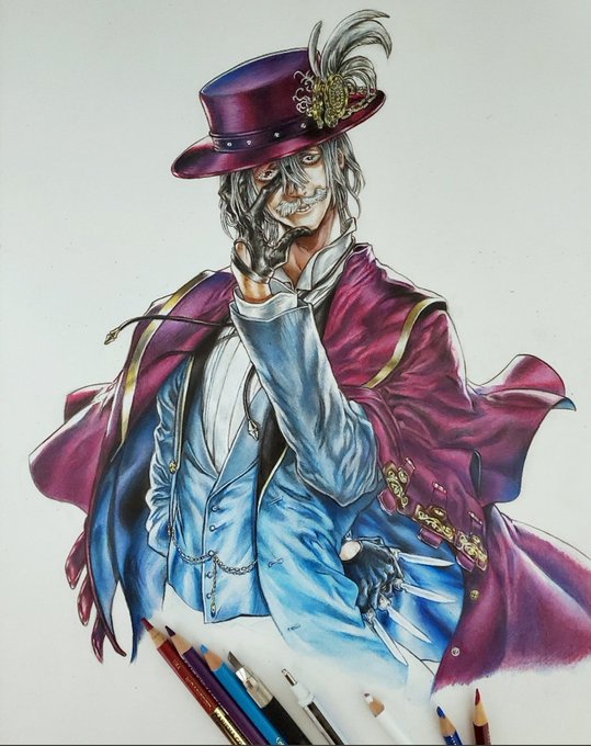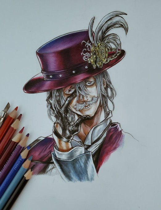 イラストの途中経過を失礼いたします🙏 今回は終末のワルキューレのジャックザリッパーを描きます 殺人鬼なのに紳士的な格好と振る舞いをする面白いキャラクターなのですが、表情が不気味で少し怖いです😅 #イラスト #色鉛筆画 #終末のワルキューレ #ジャックザリッパー #絵描きさんと繫がりたい