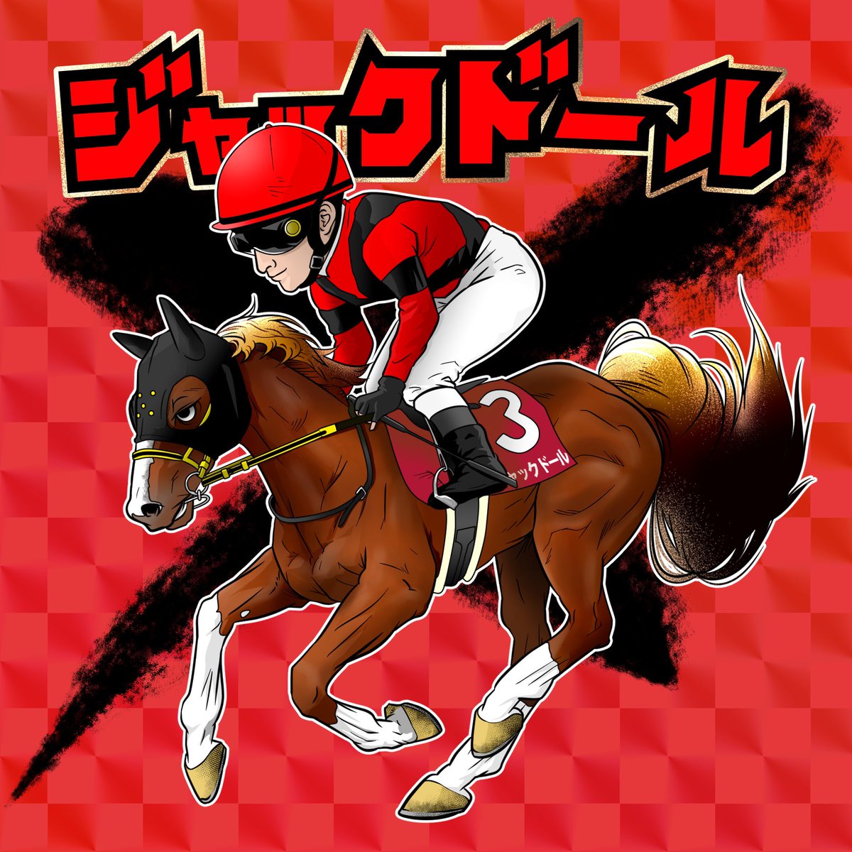 クラシック戦線終結後に、彗星の如く現れた超新星! 卓越した先行力で己のペースに持ち込み、追いすがる好敵手たちを二段階加速走法で切り裂く!! その漆黒の眼は悲願の栄光を見据えている…。 #ビックリ馬ンアート #ジャックドール #藤岡佑介