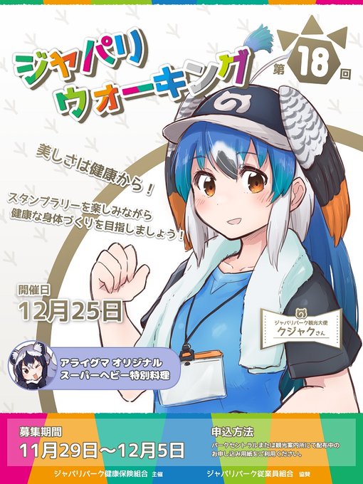 掲示物合同に寄稿した作品。子供たちが観察シートを手にしながらパークの動物展示エリアを回っている場面を想像しました。そこらで寝てるフレンズを椅子と間違えないように警告の標識とかあったり #ジャパリパーク掲示物合同