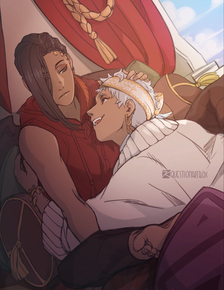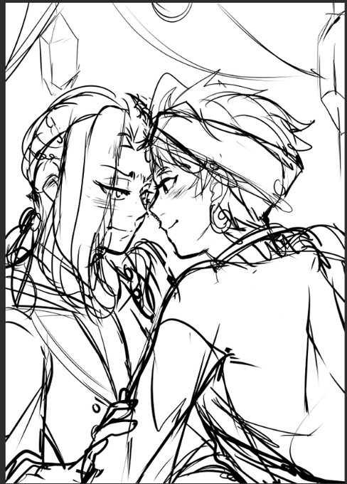 #ジャミカリ #ツイ腐テ #ツイステ #カリム・アルアジーム #ジャミル・バイパー #6章ネタバレ注意 #捏造あり #ツイステファンアート 6章途中まででちょっと描いてみた一味違うカリム君たまにはこんなのもありかな