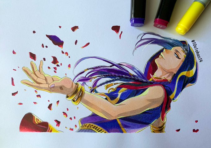 制作途中 線画を投稿した方: 早乙女様pixiv.net/artworks/99025… お借りしました。ありがとうございました。 #ツイステ #ツイステファンアート #レオナキングスカラー #ジャミルバイパー