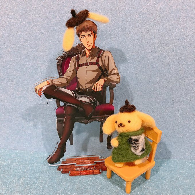 ジャン❣️誕生日おめでとうPart.① 羊毛フェルト🐏・ジャン 『兵長〜、とうとうオレのポップコーン入れも発売されましたよ〜』 ポップコーン入れジャン君バージョンが欲しくて自作しました✨ 顔はもう雰囲気で🥺 #羊毛フェルト #ジャン・キルシュタイン生誕祭2022 #ジャン生誕祭2022 #ジャン