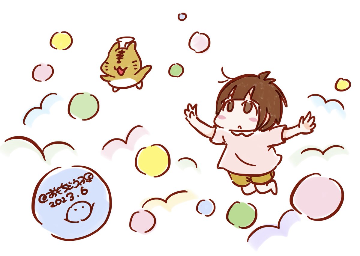 お昼は涼しい所でひなみちゃんが運動できるように デパートのキッズコーナーのカラフルなボールで遊びました♪ うっかりひなみちゃんよりもはっちゃけてしまったえつ子さん💦 ʕ•ᴥ•ʔ✨{しぇ〜い⭐️ (*´-`){あっ…えっちゃん待って〜♪ #ジャンガリアンハムスター #ひなみちゃんイラスト