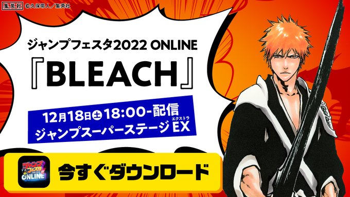 【#ジャンプフェスタ 情報】 スーパーステージEX『#BLEACH』 12/18(土) 18:00~配信 TVアニメ「千年血戦篇」の新情報に加えて、原画展「BLEACH EX.」や、公式ファンクラブ「Klub Outside」まで、盛りだくさんでお届け! 「ジャンフェス島アプリ」はコチラから〈スタッフ〉 jumpfesta.com/online_app/