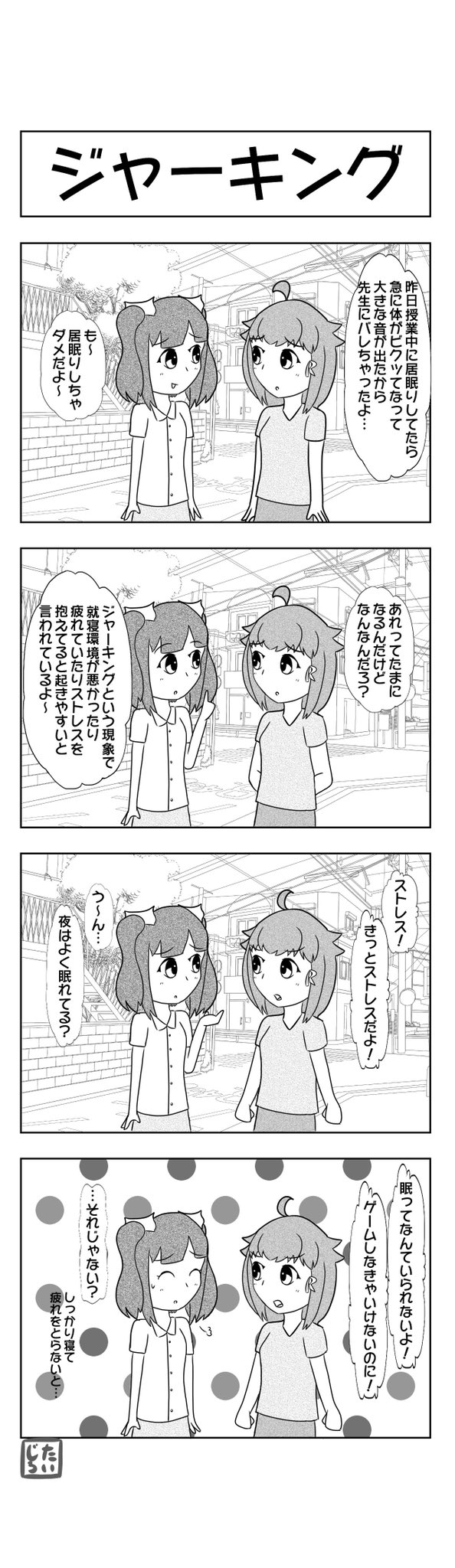 ゆいちゃん四コマ3期第二十九話(水曜日21時頃連載) 〜ジャーキング〜 😴💥 #リファ #オリキャラ #創作 #四コマ漫画 #イラスト好きな人と繋がりたい #漫画好きな人と繋がりたい #絵描きさんと繋がりたい #絵描き人 #ジャーキング