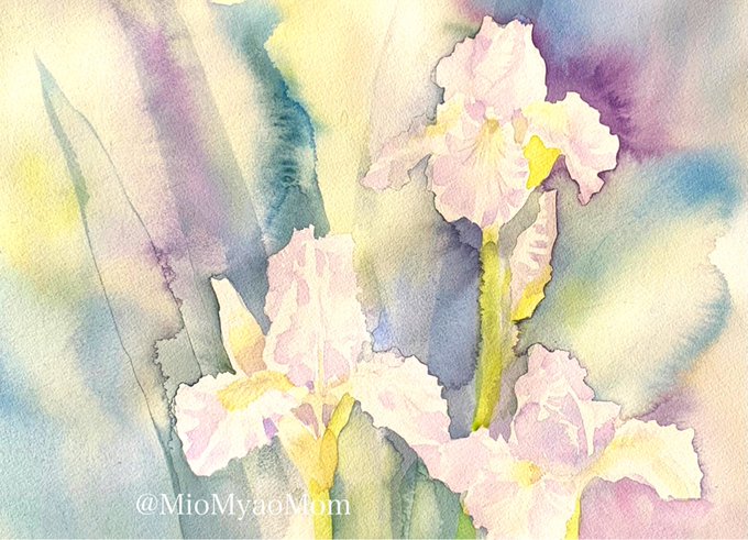 #ジャーマンアイリス #水彩 #Iris #watercolor #NoWar イリスirisは、ギリシャ神話の虹の女神だったと思い出す。虹は架け橋。旧約聖書では、虹は神との約束の象徴でもあったとも…。