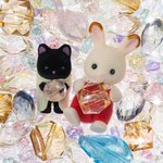 キラキラジュエルがい~っぱい💎 ショコラウサギのクレムとほしぞらネコのレジーはおめめをキラキラ輝かせて、とっても楽しそう✨ お気に入りのジュエルは見つかるかな? #シルバニアファミリー #シルバニア #シルバニア赤ちゃん #ジュエル