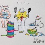 おはようございます!! #ジュニアシェフの日 ぞうたん、料理に挑戦!! 後片付けは、2人にお任せ!! 今日も素適な水曜日を〜🤗 #絵描きさんと繋がりたい #みんなで楽しむTwitter展覧会 #イラスト #油性ペン #マッキー