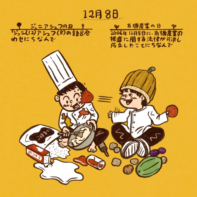 12/8は #ジュニアシェフの日 【ジュニ(12)アシェフ(8)】の語呂合わせにちなんで、子どもを対象とした料理教室を展開しているベストアメニティ株式会社が12月8日に記念日を制定。 #今日はなんの日 #オモ写
