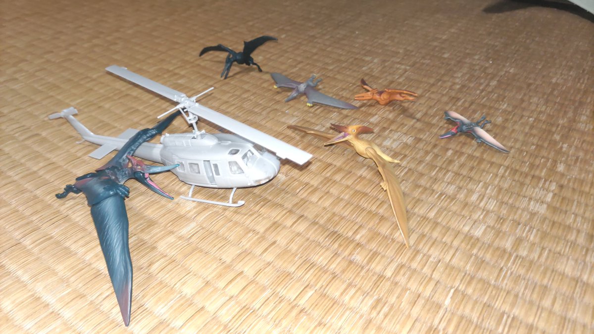 #オモ写 ヘリコプターを襲うプテラノドン ロストワールドジュラシック・パークのクライマックスは本来、サンディエゴを襲うT-REXのくだりではなくプテラノドンの襲撃が考えられていてそれを再現しました。 #ジュラシックパーク