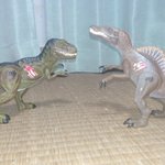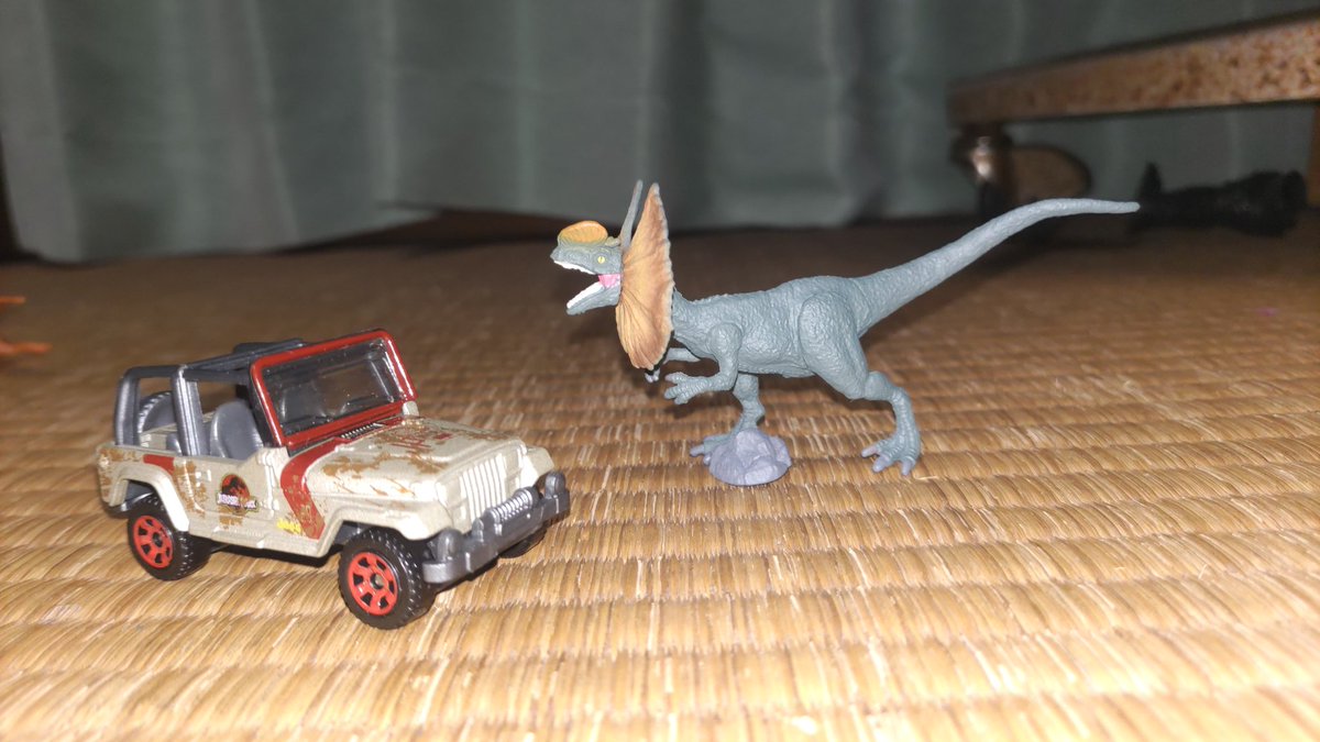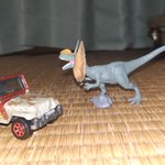 #オモ写 ジュラシックパーク ジープを襲うディロフォサウルス 劇中中盤の場面をイメージしましたが、ディロフォサウルスは劇中よりも大きかったので実際のものに近づけてみました。 #ジュラシックパーク