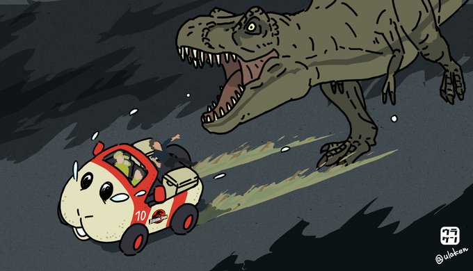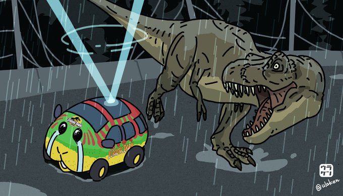 お祝い絵ちょっと加筆と、本文冒頭の登場人物紹介とあらすじ 紹介されてるとこまで キミノベル版の表紙も自分提案の構成なのですが、雨の夜のティラノサウルスが大好きなのです #JurassicPark #JurassicPark30 #ジュラシックパーク #ジュラシック・パーク30周年 #potofu kiminovel.jp/book/jurassic/