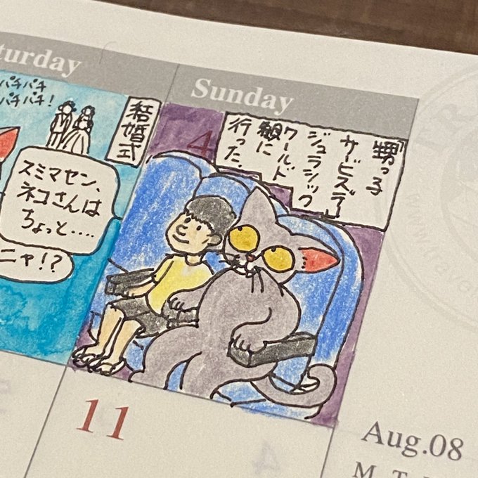 朝からジュラシックワールドを見に行った。 #ジュラシックワールド新たなる支配者 #水彩画 #手帳 #トラベラーズノート #猫 #スケッチジャーナル #マンスリージャーナル #絵 #イラスト #絵描きさんと繫がりたい #イラスト好きな人と繋がりたい