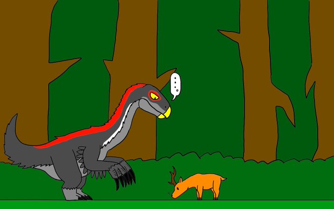 鹿を観察するテリジノサウルス🦌🦖 #ジュラシックワールド新たなる支配者 #恐竜 #テリジノサウルス #イラスト #JurassicWorldDominion #dinosaur #therizinosaurus #illust