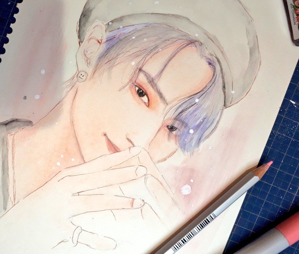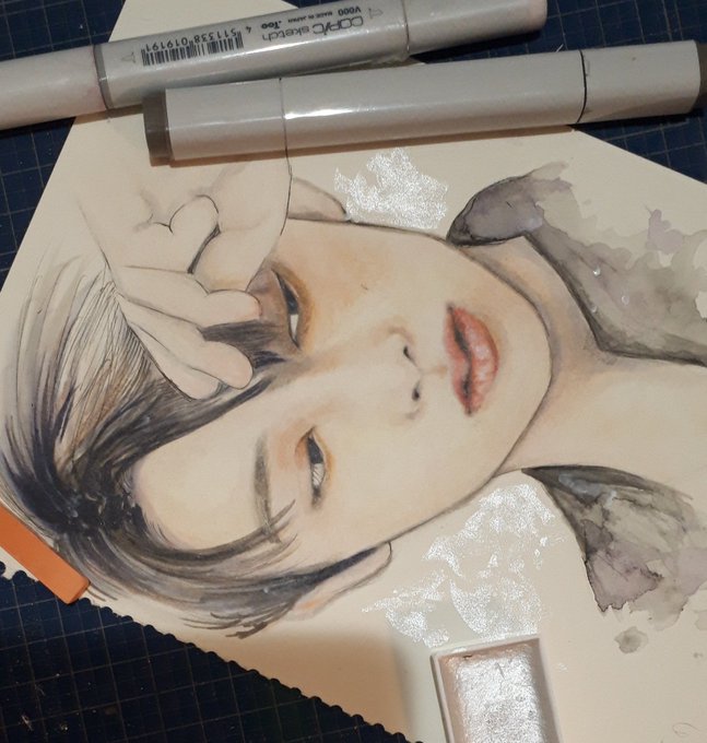 ひっさしぶりに人物描いたけども 少しでも間を開けると感覚がわかりません😧明日から特訓だ👊 #絵描きさんと繫がりたい #イラスト #水彩画 #コピック #色鉛筆 #ジュンピ #SEVENTEEN