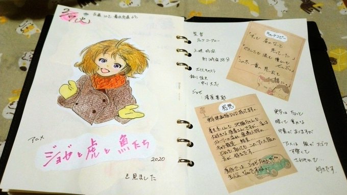 サムネ用のためにジョゼさんのファンアートを描きました。 (なお、タイトル文字も見ながら書いたので、細部が違うと思いますw) …アニメ塗りは簡単に見えて奥が深くて難しいですね💦 #ジョゼと虎と魚たち