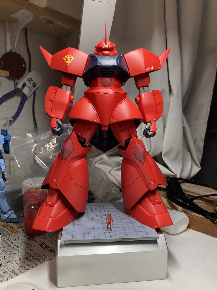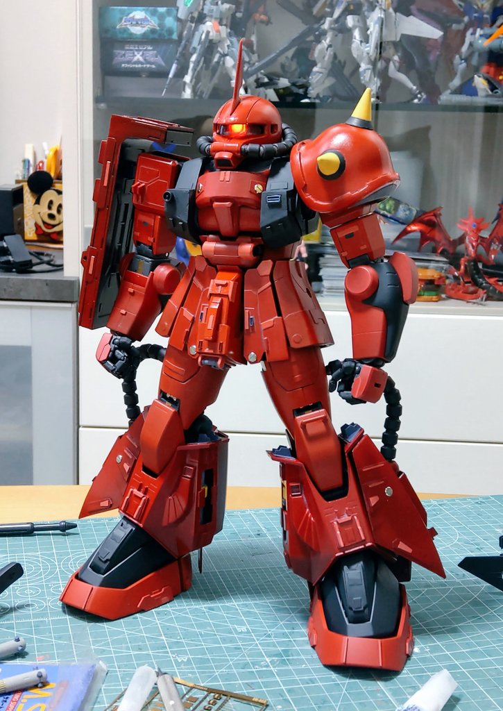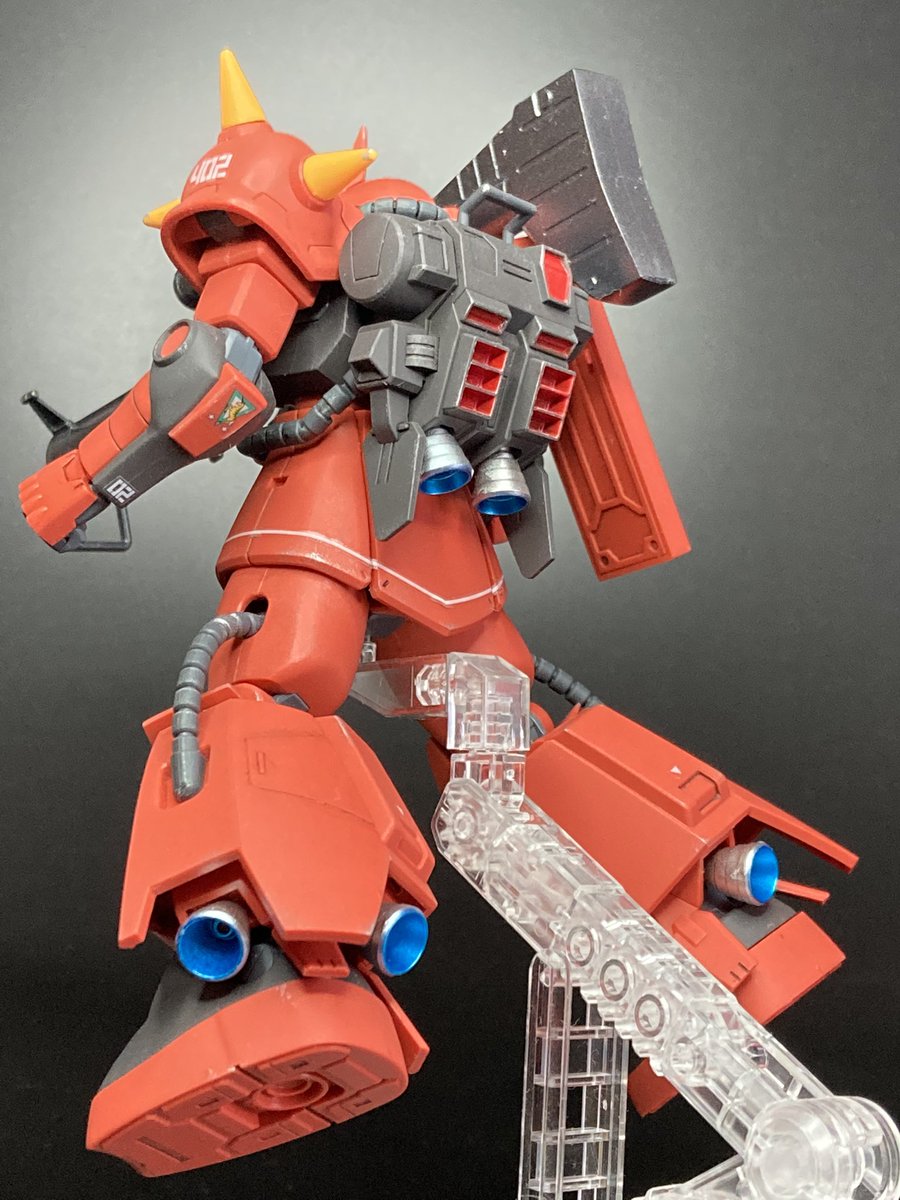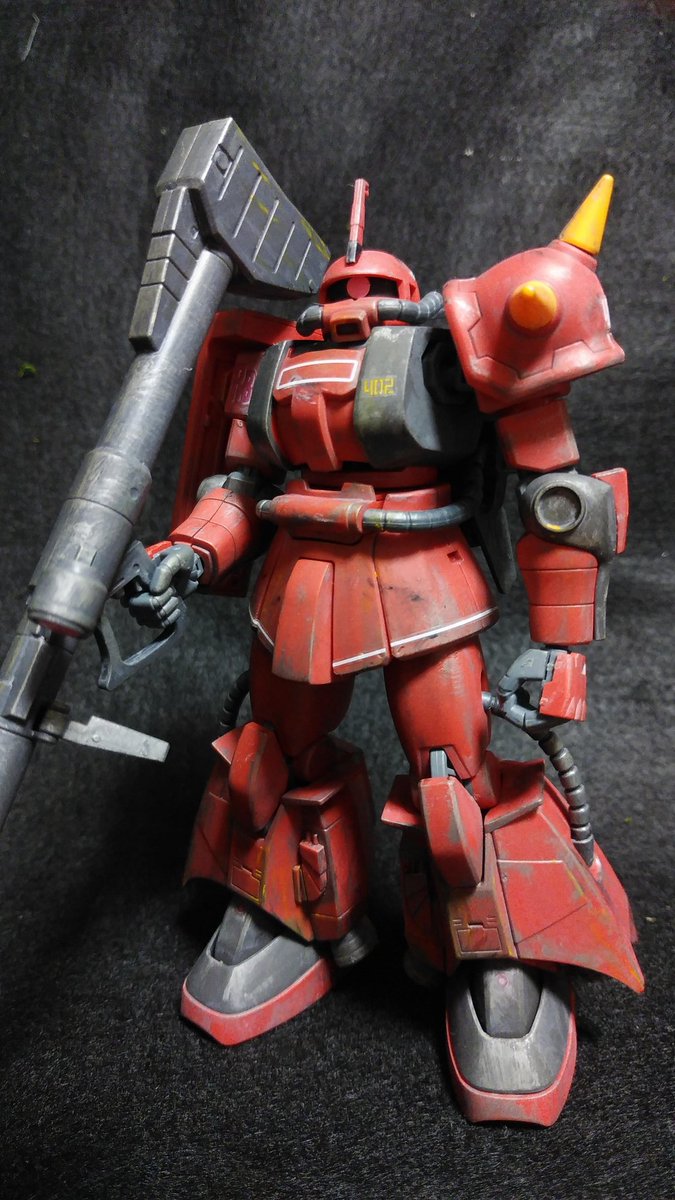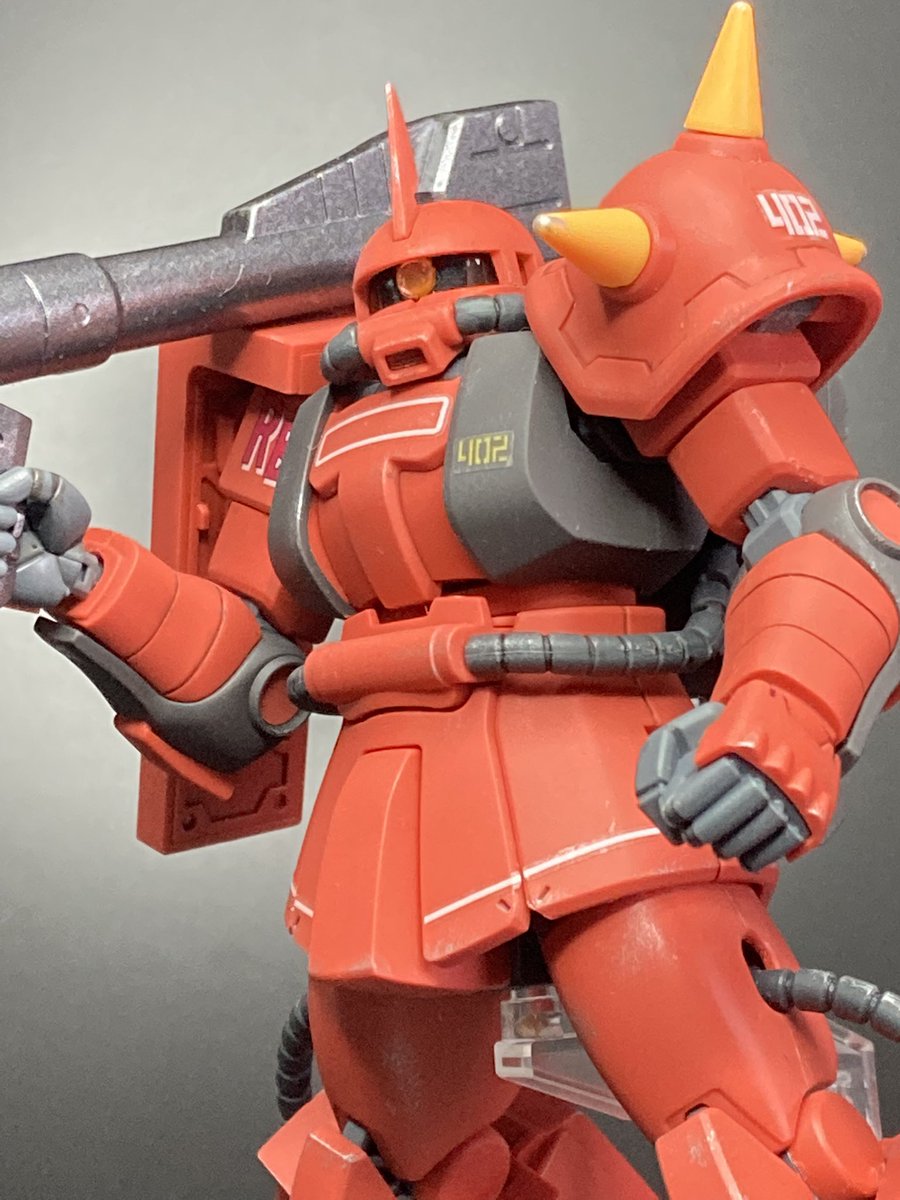 ジョニー・ライデン専用ザク完成しました😆 ウェザリングしたり、スパイク部分を別パーツにして尖らせ、色を変えたり、色々としています😃 #ジョニーライデン #ガンプラの画像を貼るとRTされると聞いて #ガンプラ好きと繋がりたい #ザク