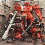 #ガンプラ #GUNPLA #13体プラスα同時製作 #グループE #ジョニー・ライデン 白備えにヒートホーク、 黒備えにザクマシンガン・・・ こうなると紅備えにはバズーカを持たせたくなるのが人情😏 設定上もジョニザクにGバズは鉄板・・・と云うことで、Gバズを自然に構えられるよう後半を延長&マッチョに😏