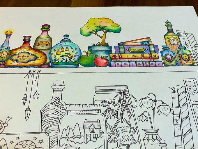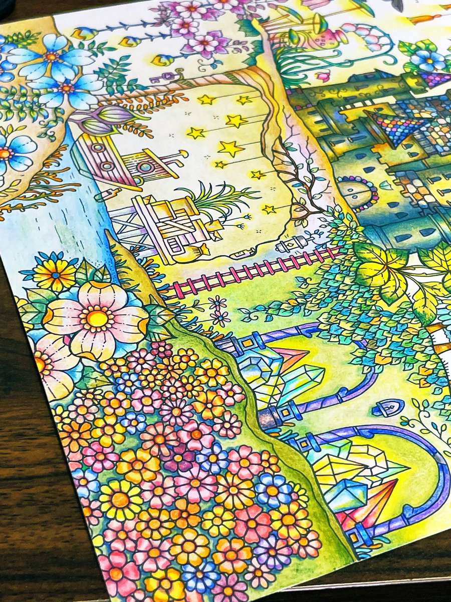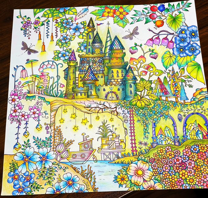 時間が少ししか作れない。でも塗りたい時はジョハンナさんでスッキリしています。 逆に、時間に余裕がないと細密な塗り絵は進まないことに気付きました🤔 (空想街…とか) 数分でも進められるとスッキリします✨ #大人の塗り絵 #ジョハンナバスフォード #色鉛筆