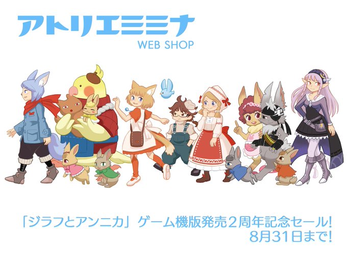 今日8月27日は「ジラフとアンニカ」のゲーム機版発売から2周年です~!🎈 2周年を記念して、アトリエミミナWEBSHOPの各種グッズを20%OFFでセール中です~! 31日まで! よろしくお願いします!🐱 kamipallet.booth.pm #ジラフとアンニカ