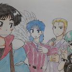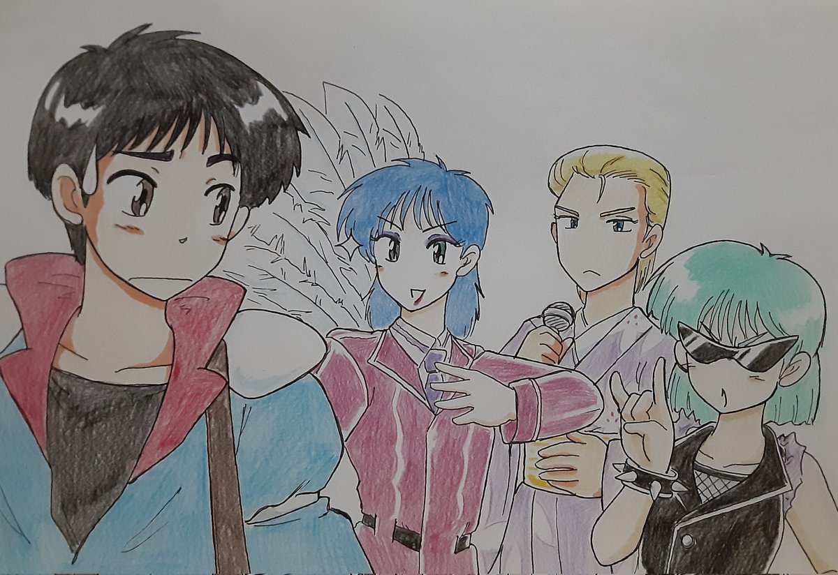 #赤い光弾ジリオン #ジリオン歌姫2022 『バンド組もうぜ』じゃなく『音楽やらないか?』と言ったら音楽性が統一しなかった (一応宝塚、演歌、パンク) デイブ入れるスペースが無くて一回諦めたけどそれはあんまりだからもう1枚描きました(テルミン) こんなんでいいですかね(良かないだろ)