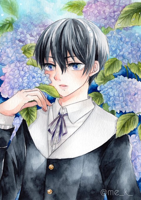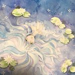 #ジルベールとマリーの肖像 参加します。 「水に揺らぐ紫陽花」水の上に散らばった紫陽花が綺麗で。こんなイメージが湧きました。 水彩、パステル色鉛筆を使用して描きました。光のホワイトだけデジタルで入れました。 なんか、私の描く花びら薄さを感じない😫