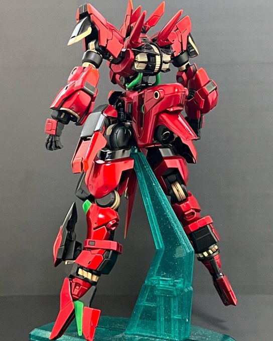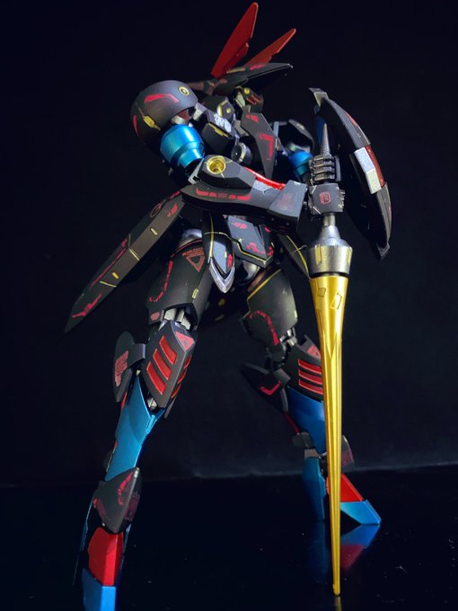ジークルーネ完成! 黒×メタリックレッド 多めの赤デカールと金のスミ入れ(ボールペンで手抜き) ゴツい感じも好きだけど、鉄血のフレームも良い #ガンプラ #ジークルーネ #ガンプラの画像貼るとRTされると聞いて #ガンプラ好きと繋がりたい #ガンプラはどんな自由な発想で作ってもいいんだ