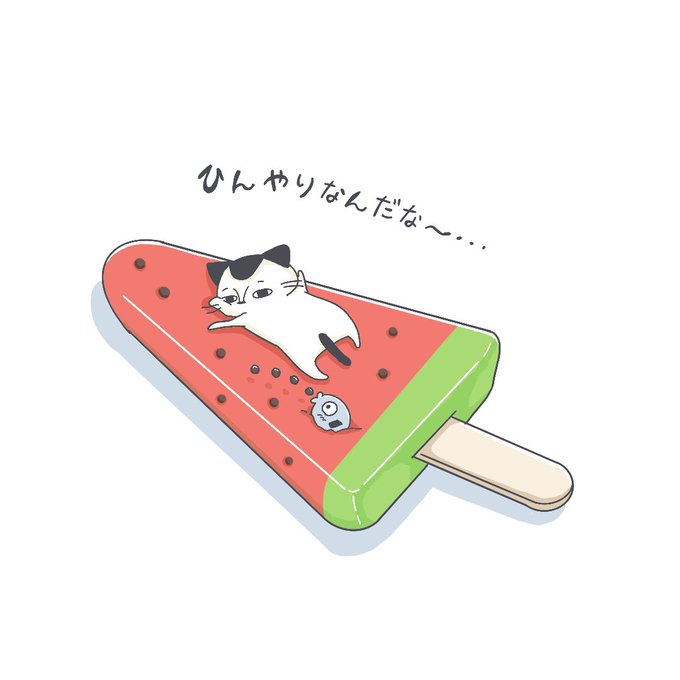 スイカバーとダイレクトスイカバーなcatとフレンズ‼︎ #イラスト #illustration #イラストレーター #絵描きさんと繋がりたい #procreate #猫好きさんと繋がりたい #シュール #ねこ #猫 #cat #うさぎ #スイカバー #アイスがおいしい