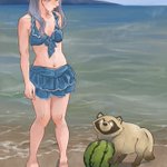 スイカにゃんこちゃん🍉夏の味わい。美味しそうなスイカ描けました💕塗って分かったのですが、スイカって真っ赤とばかり思ってたのですが、赤よりはオレンジ色に近いのですね🤗災害級の猛暑が続きます。暑気払い、熱中症予防にもがぶりと頂きましょう #イラスト #絵描きさんと繋がりたい #スイカ