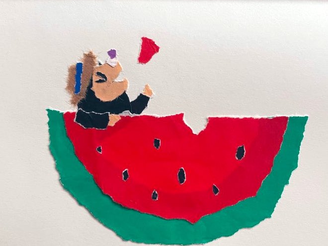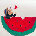 ちぎり絵で作った作品です。 「スイカ 食べよう」 #イラスト #オリジナル #紙アート #イラスト好きさんと繋がりたい #西瓜 #スイカ #illustration #watermelon #paperart #art