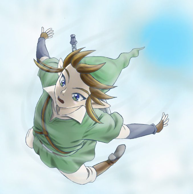 初めて大地に降りる時、ロフトバードが連れてってくれるのかと思ったらいきなり振り落とされて身一つで落下?!マジか??!ってなった場面を描いてみた ホント怖かった💦 #ゼルダの伝説 #スカイウォードソード #アイビスペイント